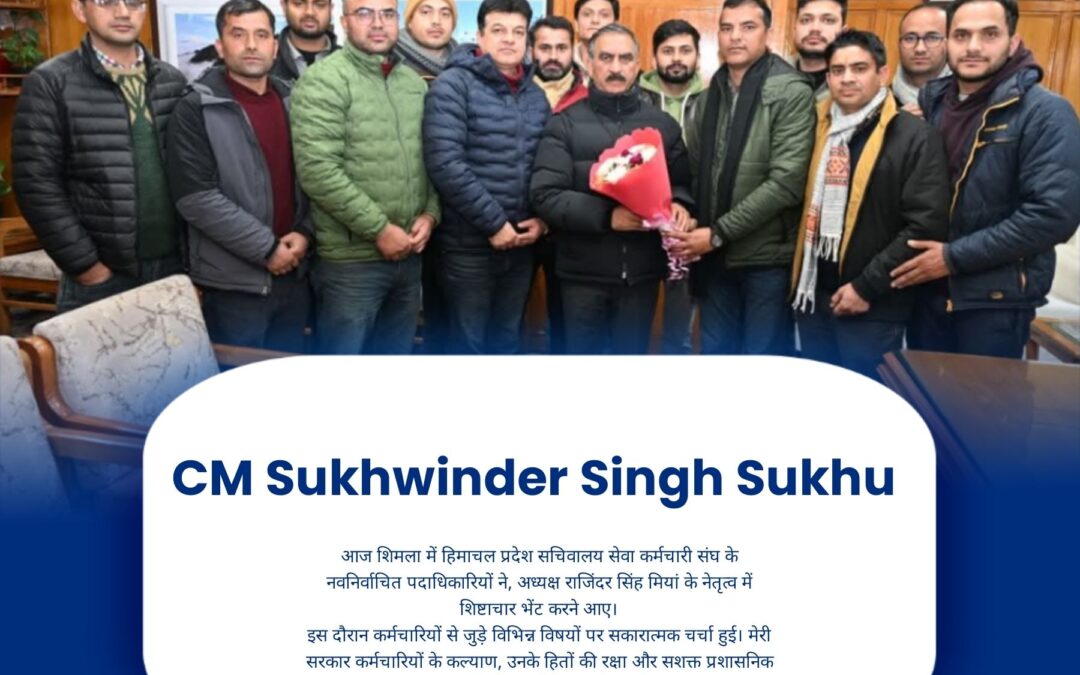 आज शिमला में हिमाचल प्रदेश सचिवालय सेवा कर्मचारी संघ के नवनिर्वाचित पदाधिकारियों ने, अध्यक्ष राजिंदर सिंह मियां के नेतृत्व में शिष्टाचार भेंट करने आए।