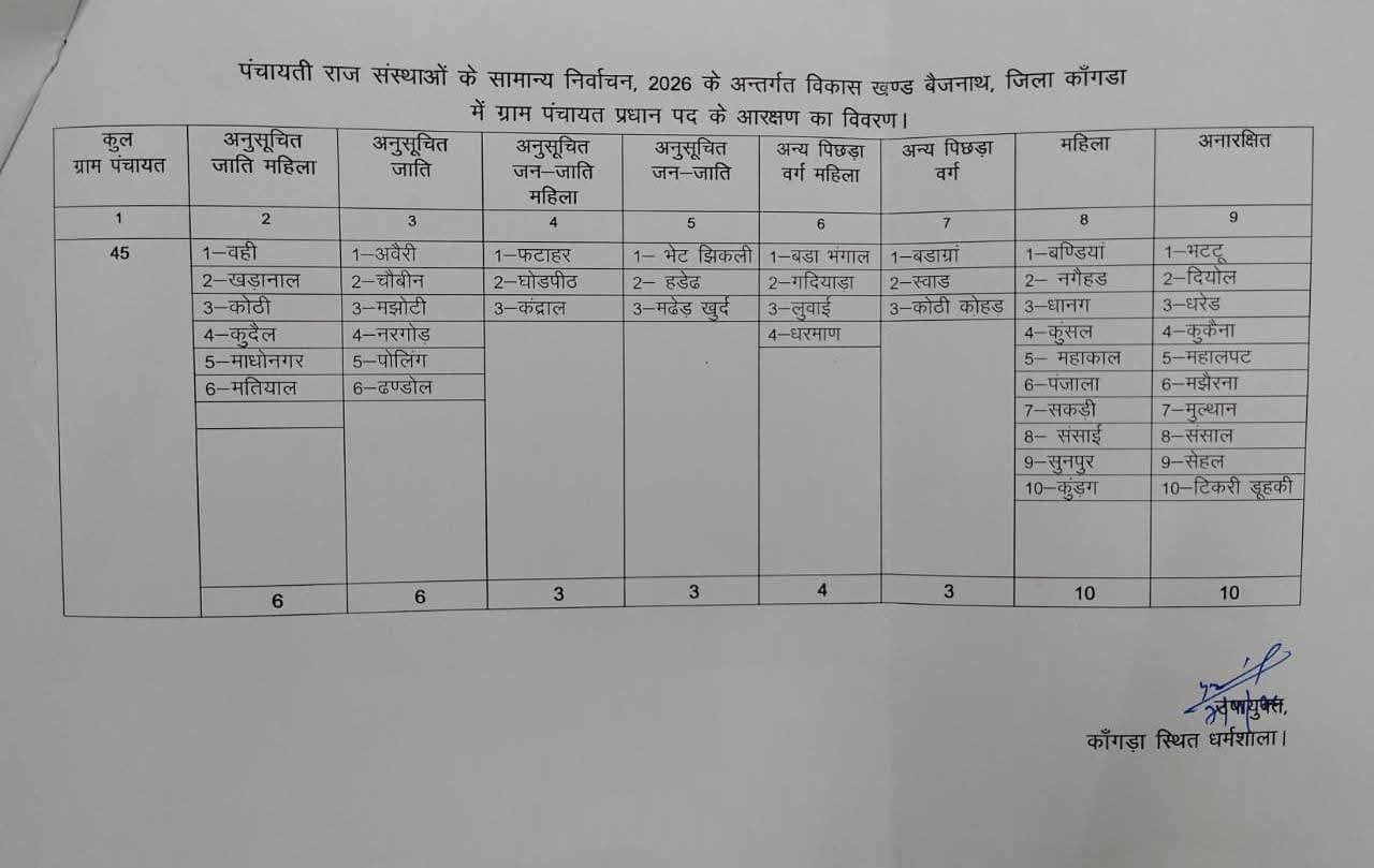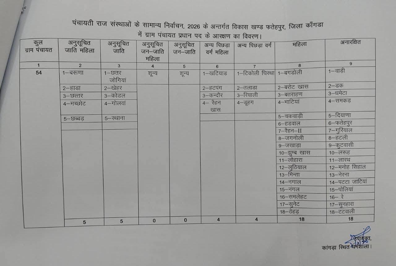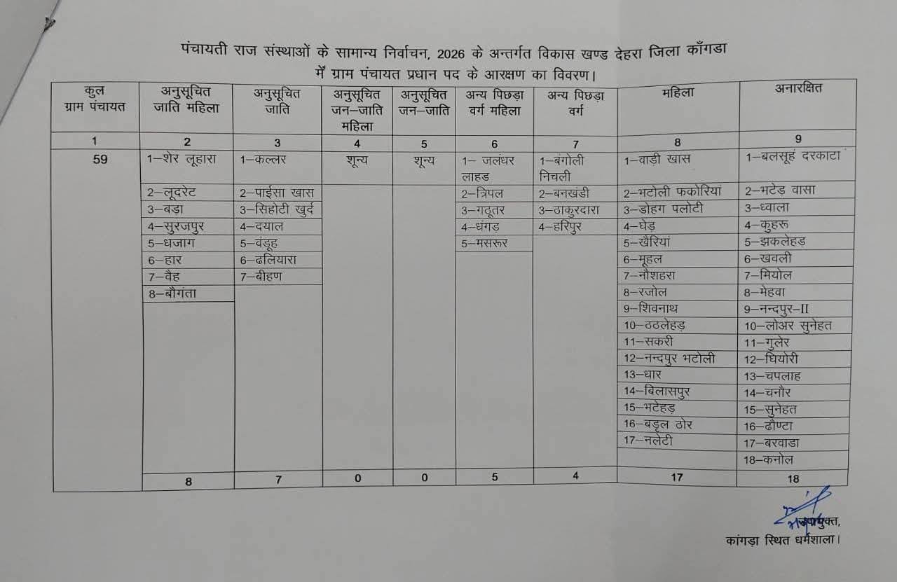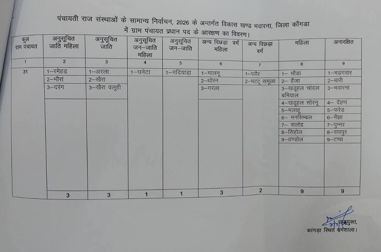 कांगड़ा जिला की 847 पंचायत 54 जिला परिषद वार्ड और 18 ब्लाक समिति अध्यक्ष का आरक्षण रोस्टर जारी। #followerseveryone #factlivetoday #rlsharma #sumeetchawla #rajeevverma