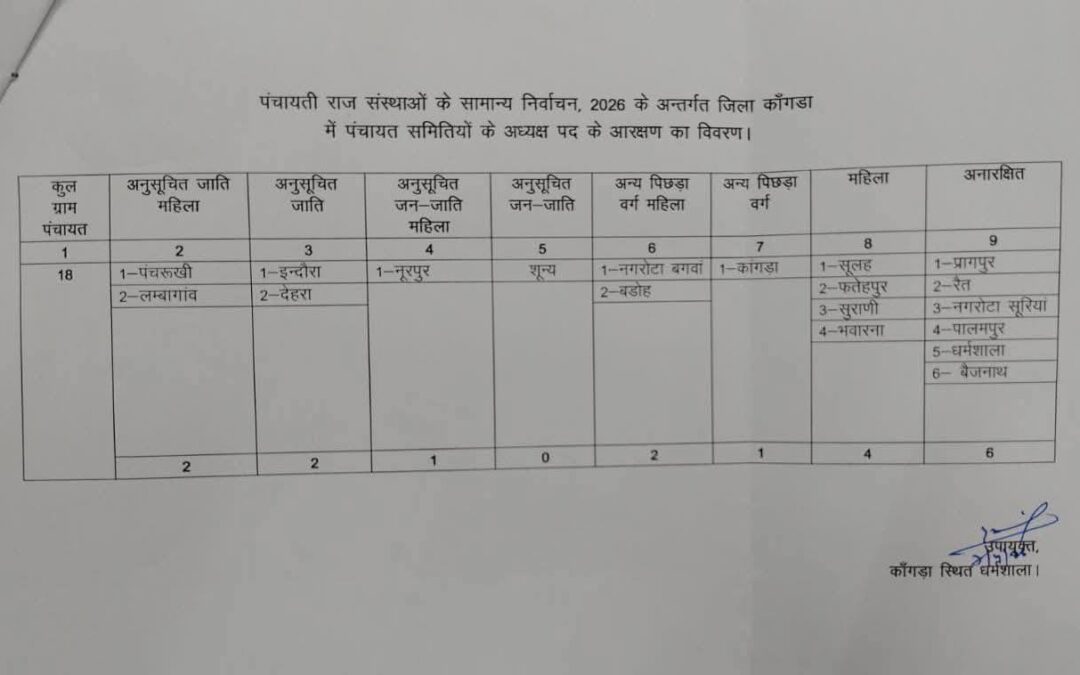 कांगड़ा जिला की 847 पंचायत 54 जिला परिषद वार्ड और 18 ब्लाक समिति अध्यक्ष का आरक्षण रोस्टर जारी। #followerseveryone #factlivetoday #rlsharma #sumeetchawla #rajeevverma