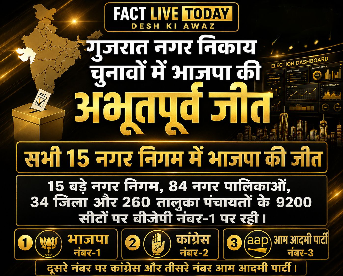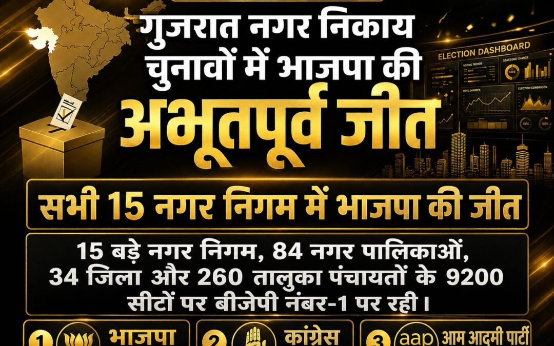 गुजरात नगर निकाय चुनावों में भारतीय जनता पार्टी (भाजपा) ने अभूतपूर्व जीत दर्ज की है।