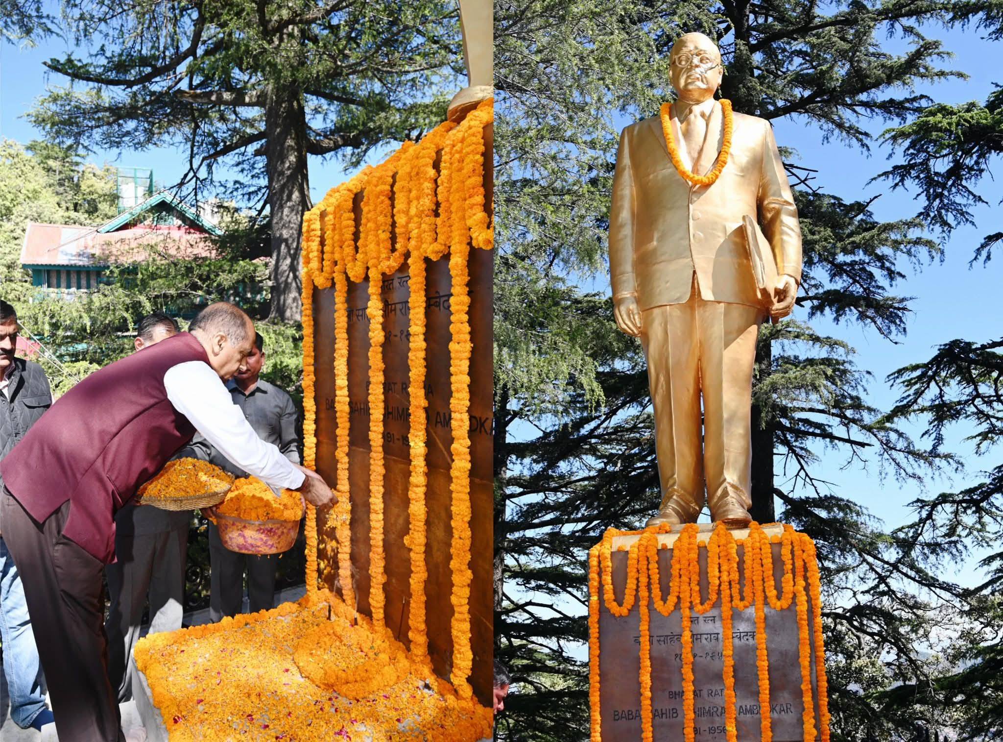 जयराम ठाकुर :शिमला के चौड़ा मैदान पहुँच कर भारत रत्न, संविधान निर्माता बाबा साहब डॉ. भीमराव अंबेडकर जी के जन्मदिवस के अवसर भावभीनी पुष्पांजलि अर्पित की।