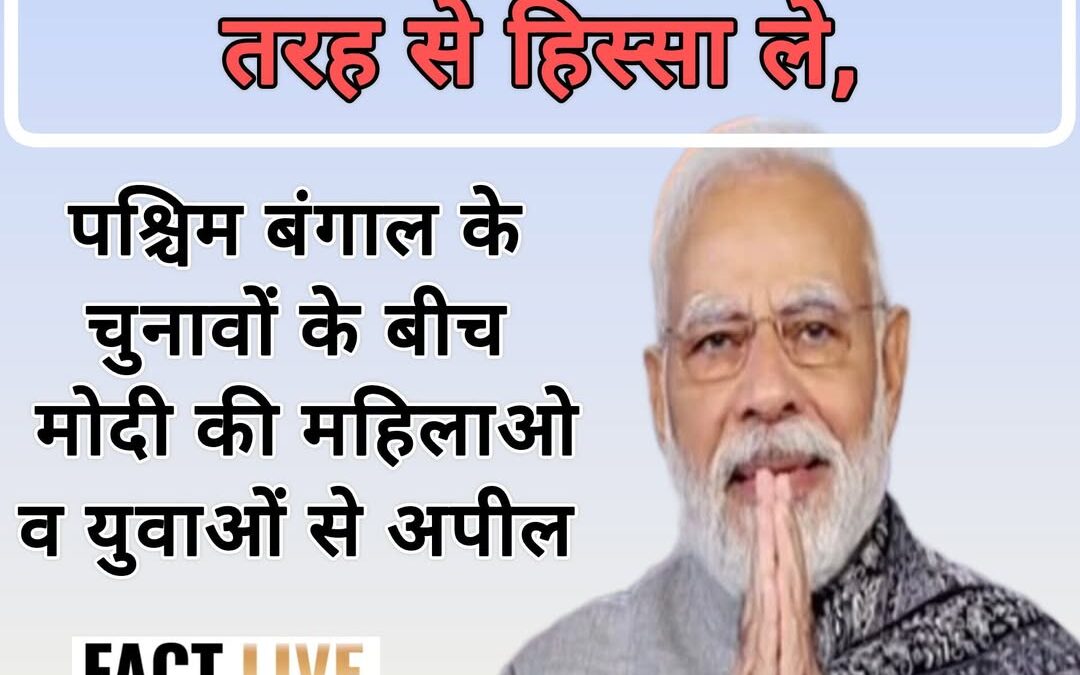 गुरुवार को सोशल मीडिया प्लेटफॉर्म एक्स पर पोस्ट कर प्रधानमंत्री नरेंद्र मोदी ने कहा, पश्चिम बंगाल विधानसभा चुनावों का पहला चरण आज हो रहा है। मैं सभी नागरिकों से आग्रह करता हूं कि वे लोकतंत्र के इस उत्सव में पूरी ताकत के साथ हिस्सा लें। मैं विशेष रूप से अपने युवा साथियों और पश्चिम बंगाल की महिलाओं से अपील करता हूं कि वे बड़ी संख्या में मतदान करें।’