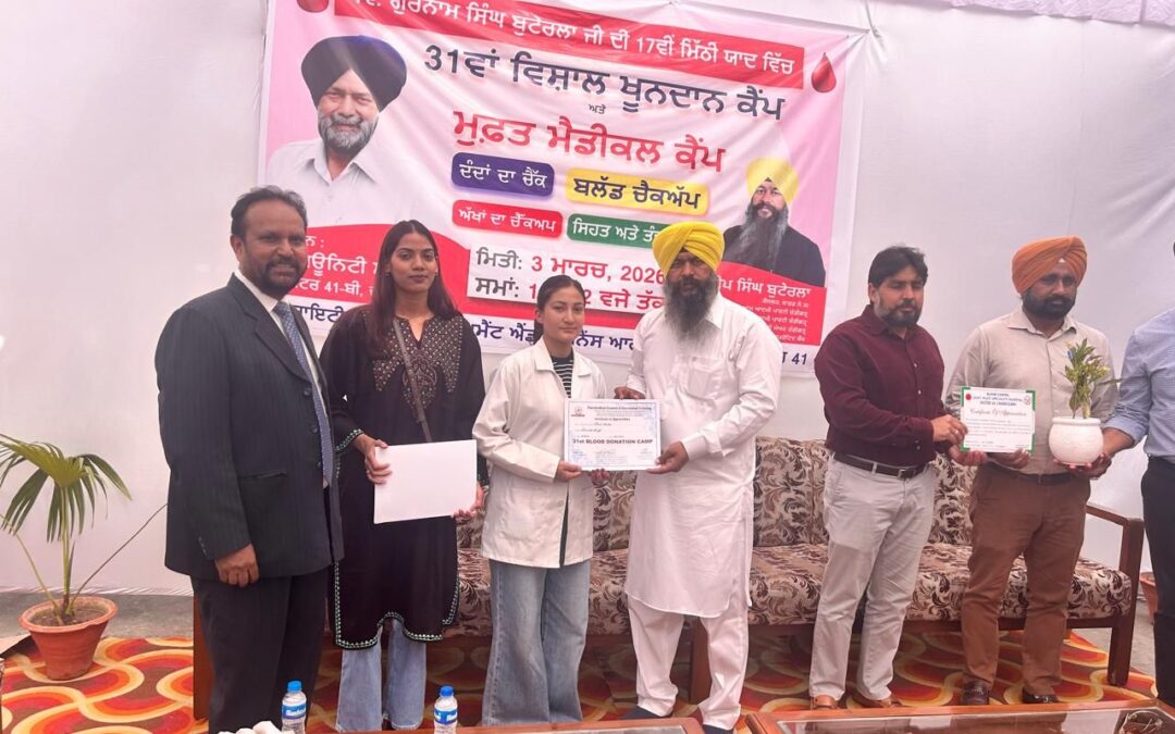 पैरामेडिकल काउंसिल एंड वोकेशनल ट्रेनिंग मोहाली ने सरदार हरदीप सिंह बाटेला जी काउंसलर चंडीगढ़ साबका डिप्टी मेयर स्टेट वाइस प्रेसिडेंट ने अपने स्वर्गीय पिताजी की मीठी याद में लगवाए गए मुफ्त मेडिकल चेकअप में खून की मुफ्त जांच की गई। पारस जी की तरफ से कानों की जांच की गई। सेक्टर 32 के अस्पताल से की तरफ से आंखों की और दांतों की और और भी स्किन की बीमारियों की भी जांच की गई। इस समय बहुत सारे लोगों ने खून दान भी किया। सरदार हरदीप सिंह जी बटरेला की तरफ से पीएमसी के स्टाफ और वालंटियर जसपिंदर कौर, रविंदर कौर, प्रोफेसर सुनीता रानी, सुरती ठाकुर और जजजीत सिंह को हरदीप सिंह बटरेला और वाइस चेयर पर्सन सिमरनजीत कौर की तरफ से प्रशंसा पत्र दिए गए।