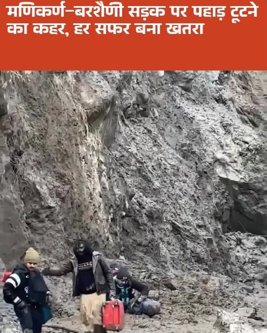 मणिकर्ण घाटी के मणिकर्ण–बरशैणी सड़क मार्ग पर घट्टागढ़ के पास पहाड़ी से लगातार भारी भूस्खलन हो रहा है। सड़क पर मलबा और पत्थर गिरने से यातायात बाधित हो रहा है, जिससे वाहन चालकों और राहगीरों को भारी परेशानी का सामना करना पड़ रहा है।