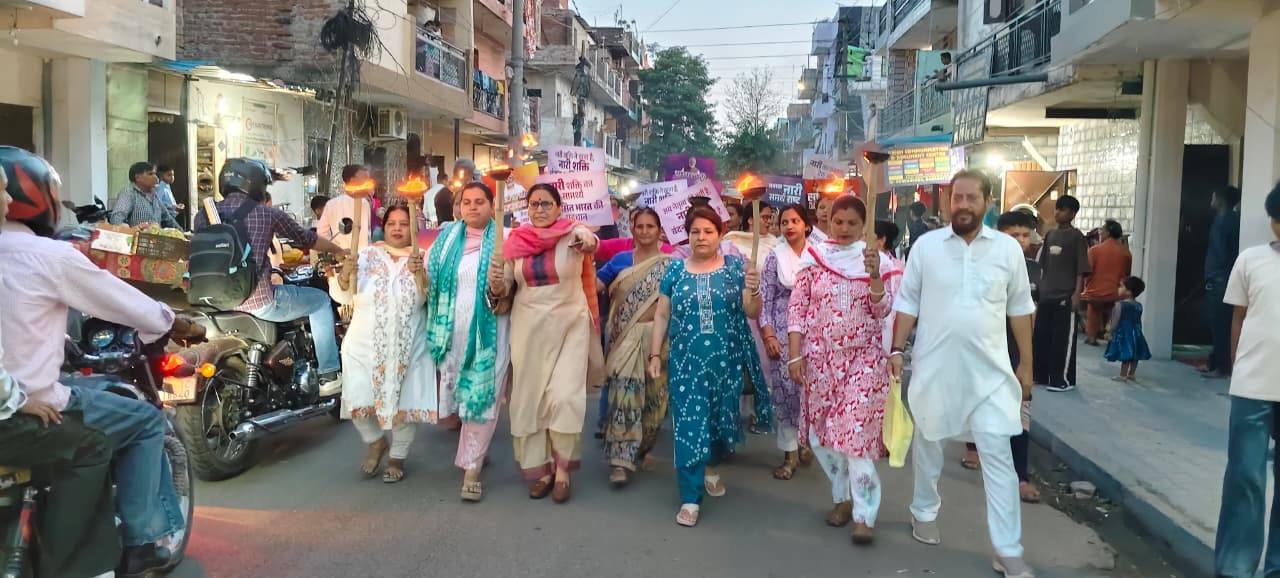यह मशाल पदयात्रा सामुदायिक केंद्र, मौली जागरा के बाहर से शुरू होकर शिव मंदिर, मौली जागरा तक निकाली गई। पूरे मार्ग में महिलाओं ने हाथों में मशालें लेकर और जोरदार नारों के साथ अपने आक्रोश को व्यक्त किया। “नारी शक्ति का सम्मान करो”, “महिला विरोधी सोच नहीं चलेगी” और “नारी शक्ति जिंदाबाद” जैसे नारों से वातावरण गूंज उठा। महिलाओं का उत्साह और एकजुटता इस कार्यक्रम की सबसे बड़ी ताकत रही।