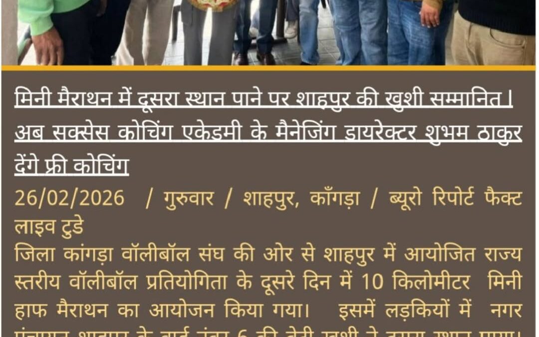 अब सक्सेस कोचिंग एकेडमी के मैनेजिंग डायरेक्टर शुभम ठाकुर देंगे फ्री कोचिंग