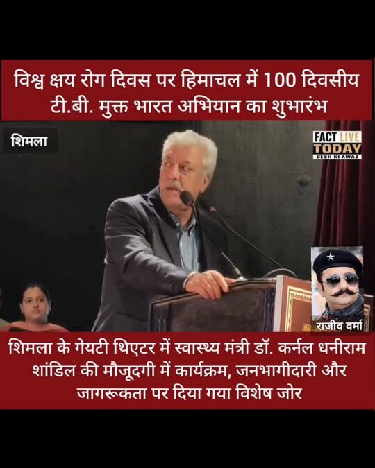 राष्ट्रीय स्वास्थ्य मिशन एवं स्वास्थ्य एवं परिवार कल्याण विभाग, हिमाचल प्रदेश द्वारा आज विश्व क्षय रोग दिवस के अवसर पर गेयटी थिएटर, शिमला में 100 दिवसीय टी.बी. मुक्त भारत अभियान का राज्य स्तरीय शुभारंभ किया गया।