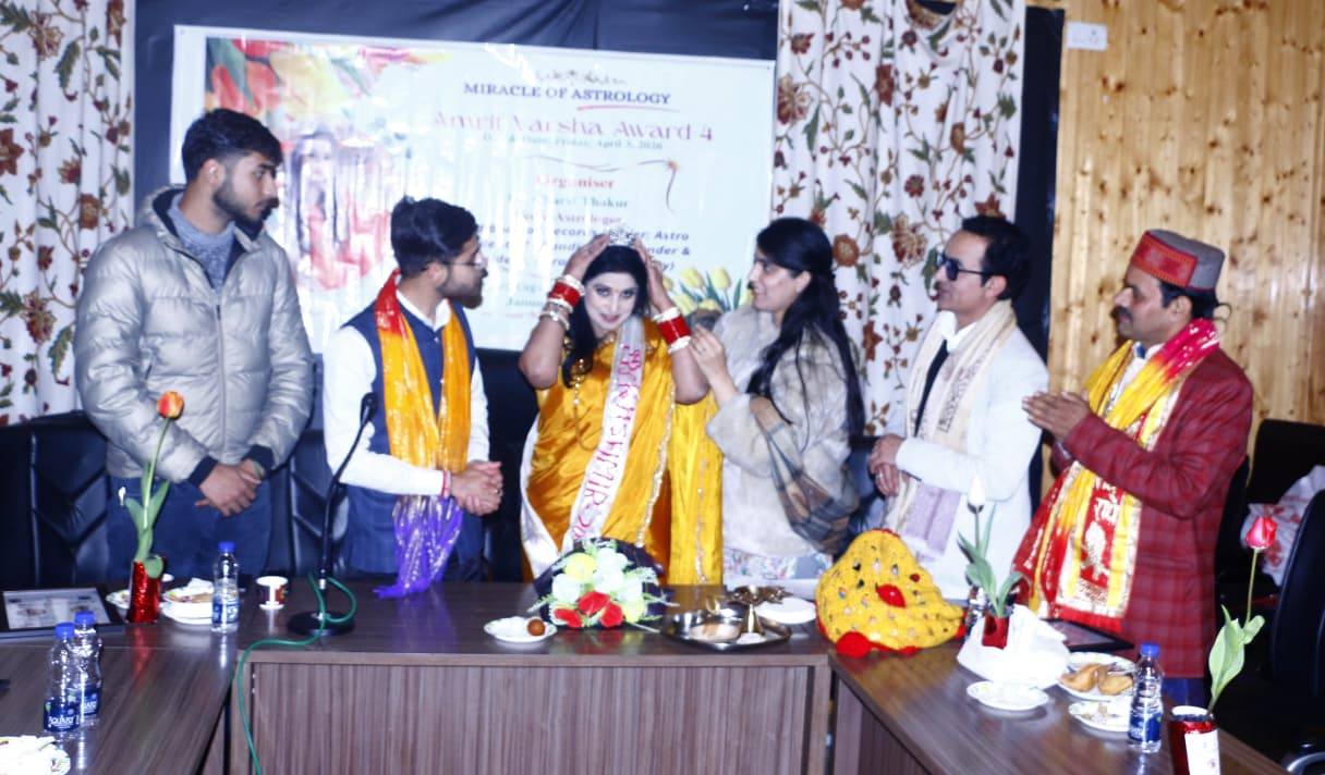 शहर की वैदिक एस्ट्रोलॉजर डॉ. चारवी ठाकुर को मिसेज कश्मीर 2026 के खिताब से सम्मानित