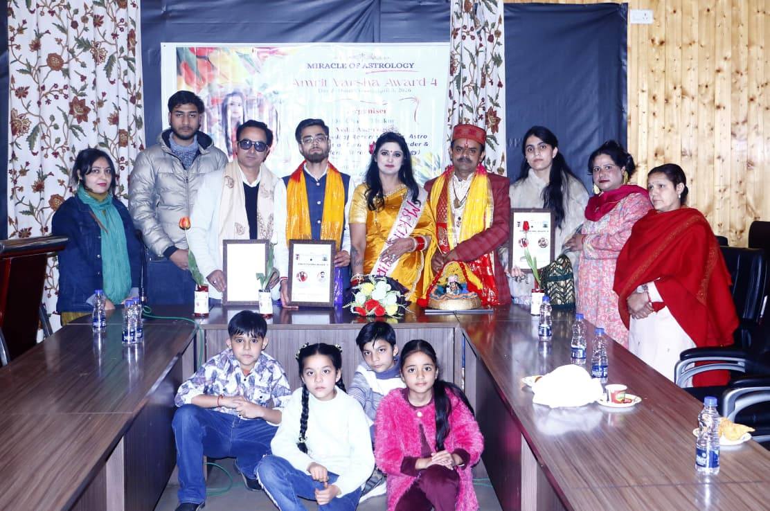 चंडीगढ़, 4 अप्रैल 2026: आध्यात्म और ज्योतिष से जुड़े भव्य आयोजन “अमृत वर्षा अवार्ड्स–4” का सफल आयोजन मिरेकल ऑफ एस्ट्रोलॉजी , चंडीगढ़ की फाउंडर एवं प्रेसिडेंट डॉ. चारवी ठाकुर के नेतृत्व में श्रीनगर, जम्मू एंड कश्मीर में किया गया।