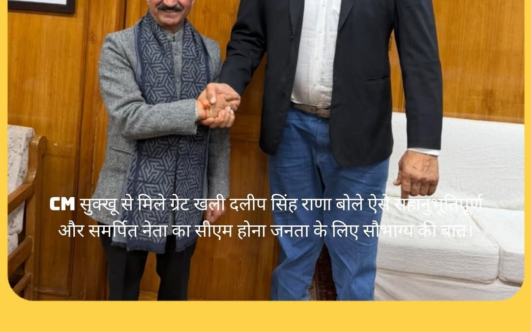 CM सुक्खू से मिले ग्रेट खली दलीप सिंह राणा बोले ऐसे सहानुभूतिपूर्ण और समर्पित नेता का सीएम होना जनता के लिए सौभाग्य की बात l